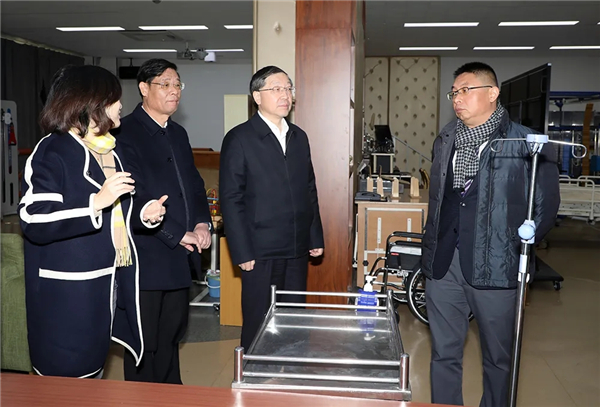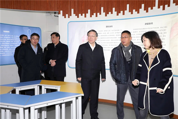 钱锋一行先后调研了健康与社会关怀学院、建筑与环境艺术学院,走访高龄优质护理暨介护体验馆、老年康复护理实训基地、文物陈列展示实训室、文物分析与检测实训室等。