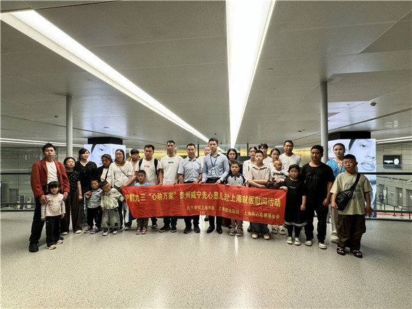 7月15日,今年5月在威宁开展的沪黔九三“心动万家”儿童先心病公益筛查活动中筛出的第一批符合手术条件的10名先心患儿在家长的陪护下抵达上海,将在上海德达医院进行免费手术治疗。九三学社上海市委社会服务部部长戎伟栋等到虹桥机场接机。
