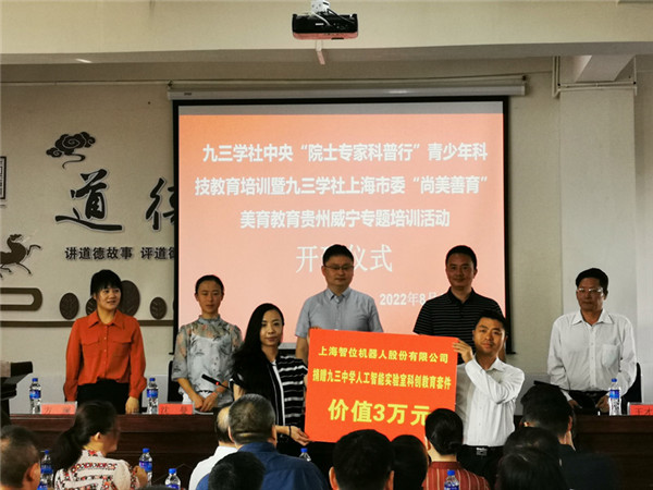 在九三学社上海市委的牵线联络下,上海智位机器人股份有限公司向威宁县九三中学捐赠价值3万元的中小学人工智能教学包和比赛套件,并将继续提供后续相应的培训课程。