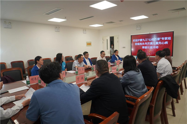 18日下午五点,沪蒙九三“心动万家”儿童先心病筛查公益活动启动仪式在包头市第八医院会议室举行。九三学社包头市委主委、高新区管委会副主任侯志学介绍了社包头市委的基本情况,筛查活动的前期工作,并结合“三千孤儿入内蒙”的历史佳话,表达了情深似海的沪蒙之谊,对筛查团队一行不远千里来到包头表示欢迎和感谢!上海佑心慈善基金会理事长车莹、上海德达医院院办主任薛圣皓分别介绍了上海佑心慈善基金会和上海德达医院的基本情况,并表示将全力以赴做好筛查和后续救治工作,帮助困境先心患儿战胜疾病,重获健康。上海德达医院外科中心主任刘建实和超声科主任李欣分别介绍了国内先心病的现状和诊疗技术的发展,阐述了早发现早治疗的重要意义。九三学社内蒙古自治区委社会服务部部长王英转达了主委于仁杰对上海筛查团队的问候和欢迎,并介绍了项目对接的过程。九三学社上海市委社会服务部部长戎伟栋对给予活动大力支持的社包头市委、包头市第八医院等表示由衷的感谢,他介绍了“心动万家”项目实施情况,并希望大家共同努力,让困境先心病患儿得到及时免费治疗,为受先心病困扰的家庭带来希望。