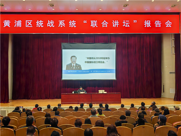 12月13日下午,中共黄浦区委统战部、九三学社黄浦区委、黄浦区社会主义学院联合举办统战系统“联合讲坛”报告会。会议邀请九三学社上海市委常委、社经贸委员会主委、国家会展中心(上海)有限责任公司董事、总裁助理章伟民作“‘不一般’的进博会”主题报告。社区委主委郝俊东主持,中共黄浦区委统战部副部长、区社会主义学院党组书记、常务副院长袁伟东和中共黄浦区委统战部副部长、黄浦区台办主任陈理出席。