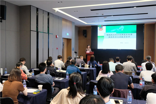 上海市政协提案委员会常务副主任、社市委原副主委黄鸣作了题为《增强政治意识、发挥党派优势,提高参政议政能力水平》的专题报告。她结合自己的工作实践和一些典型案例,对如何履行好参政议政职能,如何形成高质量的社情民意信息和议政建言成果,进行了严谨而直观的分析讲解。