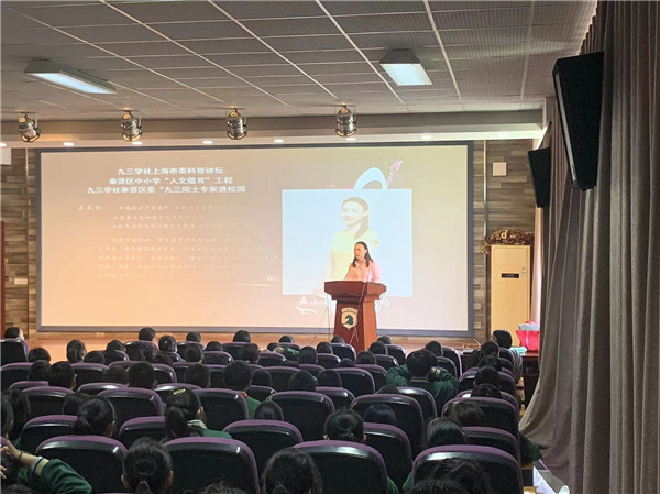 4月21日下午,“九三院士专家进校园”讲座活动在汇贤中学举办。本次讲座由九三学社上海市委科普讲坛、奉贤区教育局 “人文蕴育”活动平台联合承办,社奉贤区委社会服务工作委员会具体统筹协调,特邀社员、中国福利会少年宫教师、上海音乐家协会会员王大红,为400多名师生们作了一场题为“音乐与健康——音乐让生活更美好”的科普讲座。