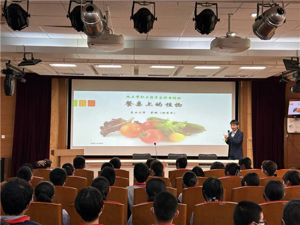 5月12日下午社市委学习和社史工作委员会副主任、复旦大学讲师裴鹏在孙桥中学的科普讲座,则从另外一个视角切入。在这场题为《餐桌上的植物》的报告中,裴鹏详细阐释了稻、黍、稷、麦、菽、麻等我国主要农作物的原产地、驯化、传播及种植、制作方法和营养价值等,并着重介绍了以袁隆平院士为代表的当代科学家为国育种、科技兴农的光辉事迹,为同学们上了一节生动的爱国主义和劳动教育课。