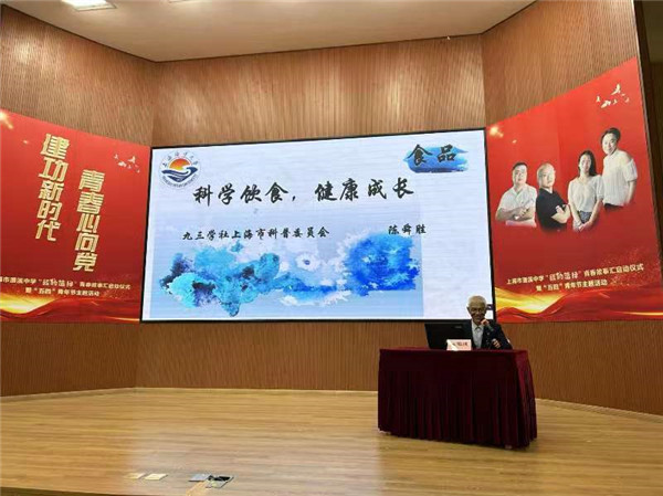 “悠悠万事,吃饭为大”。本轮巡讲有两场围绕饮食展开。5月8日下午社市委科普工作委员会原副主任、上海海洋大学教授陈舜胜在澧溪中学作的报告,以《科学饮食,健康成长》为题,对6大类营养素的主要来源及功用展开了深入阐释。陈舜胜强调,营养的核心是合理,要避免膳食构成比例失调,注意食品安全与卫生,否则就可能引发亚健康甚至导致多种疾病发生。