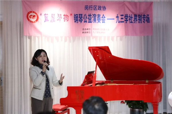 12月2日,由闵行区政协主办、九三学社闵行区委承办的九三学社界别专场钢琴公益演奏会在“慧音蓝屋”如期举办。闵行区政协副主席蔡怿晖,九三学社上海市委副主委、中国航发商用航空发动机有限公司副总经理邵驰,区政协办公室主任王超,社区委主委、区市场局副局长龚明红,社区委副主委、区审计局副局长邹旭华等领导莅临活动,区九三学社界别政协委员、社区委委员及社员骨干等近50人到场聆听演奏。