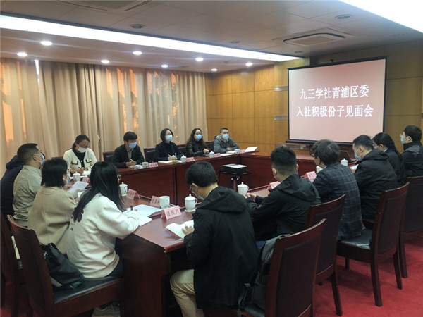 11月5日上午,九三学社青浦区委在区党校会议室召开入社积极分子见面会。社区委主委朱勤出席,社区委副主委沈雪峰主持,部分社区委委员和10位入社积极分子参加了见面会。