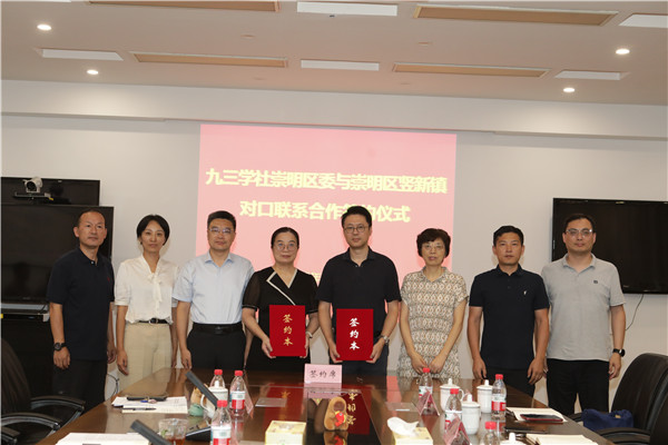 9月24日,九三学社崇明区委与竖新镇党委举行对口联系合作签约。社区委主委施菊萍,崇明区竖新镇党委书记李永林,竖新镇党委副书记、镇长顾玲玲,社区委副主委陈柳焱,竖新镇党委副书记沈益出席。社区委委员俞永峰、钱志华等参加。