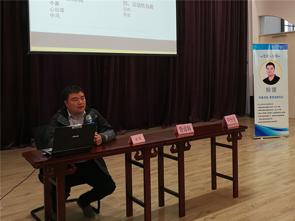 活动分两个环节。首先,陆刚做题为《家庭急救知识》的科普宣讲。近半小时的讲解后,尽管声音有些嘶哑,但能让老百姓了解到“拨打120的重要细节”“心肺复苏的急救过程”“中暑的急救方法”“心肌梗塞及脑中风的急救策略”等内容,陆刚仍感到由衷的开心和欣慰。
