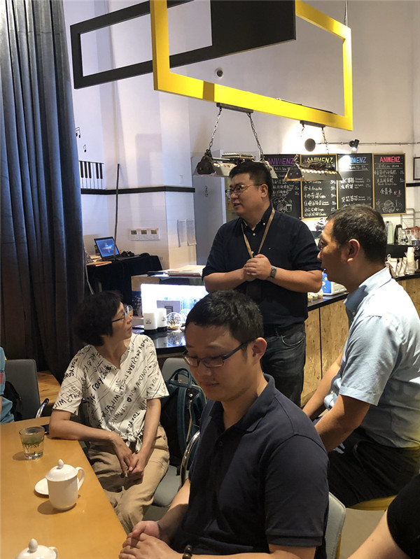 社员们参观了布满二次元元素,装扮激萌的猫悦上城办公区域、展示长廊及产业孵化区,观摩了8K微电影纪录片《海派百工》的宣传片及其中的《木板水印》篇。勾描师、刻板师、水印师细致耐心,不畏枯燥的精神引来社员们阵阵赞叹。社员、上海创意设计师协会主席团常务理事、华东理工大学艺术与传媒学院客座教授、猫悦上城创始人何海荣介绍了纪录片《海派百工》的创作初衷和传统工艺与现代创意中的工匠精神。社员们与何海荣围绕如何让创意产业新动能在国内、在上海萌生,如何通过文化助推器萌动东西方文化交融,如何以二次元等青少年喜闻乐见的方式激起非物质文化遗产在青少年心中萌发等内容座谈交流。