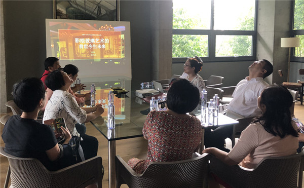 会后,社区委一行还参观了陈伟德玻璃艺术工作室。区政协委员彭阳热情接待,并在展室做艺术玻璃专题普及讲座。