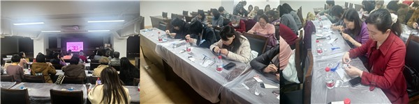 3月12日下午,九三学社虹口区委举办庆祝“三八”国际劳动妇女节--仿点翠胸针制作活动。活动由社区委副主委狄洁姗、程芳带队,近50名女社员参加。