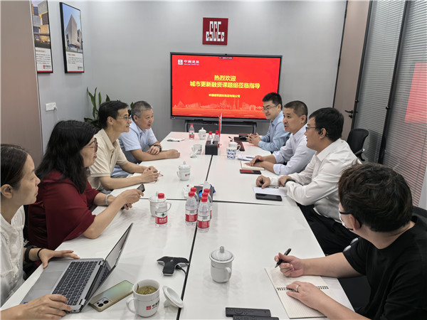 调研组听取了中建国际集团的相关介绍与投资建设经验。投资金融部相关人员详细介绍了内陆城市更新项目的投融资模式,并提出将模块化集中建筑(MIC)服务城市更新的新理念。