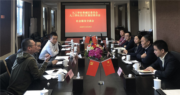 为更好地服务长三角一体化发展,加强长三角地区九三学社基层组织的交流,10月28日上午,九三学社苏州市吴江区基层委员会在主委朱雁鸣的带领下,一行5人来到九三学社青浦区委。社区委主委朱国健、副主委袁永坤,社区委社会服务专委会主任庄祖嘉、副主任姜玉龙接待了朱雁鸣一行,双方在青浦区联怡枇杷园会议室就社会服务及其他社务工作开展座谈交流。