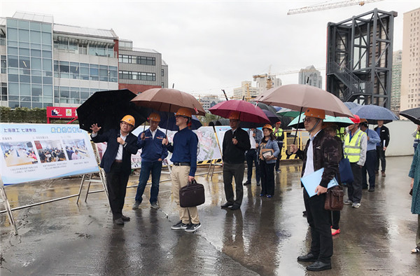 监督小组首先实地考察调研了杨浦区C090202单元R-04、T-02、T-04商办项目现场,听取了参与建设单位关于项目管理情况及深基坑工程实时监控管理平台在工地上的应用情况汇报。