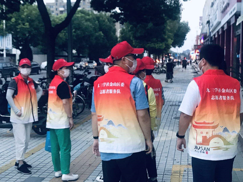 社员们作为志愿者积极参与城市精细化管理,也为金山区创建全国文明城区增添了一道亮丽的风景线。
