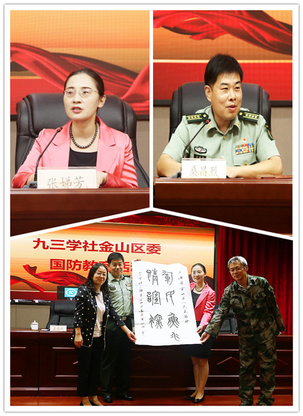 活动邀请到金山区委常委、区人武部政治委员桑昌烈作国防教育。桑昌烈凭借丰富的军事理论和敏锐的视角前瞻,分析了当前我国周边安全形势,介绍了我国军队改革的有关情况。报告精彩、内容详实,使与会的社员们进一步增强了居安思危的国防观念,同时也深受鼓舞。