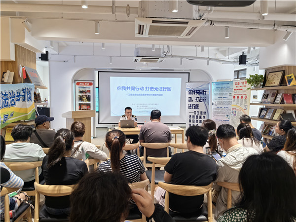 社员沈倬俭作为此次科普活动的主讲人,从非法行医的界定、危害以及相关法律法规等方面进行讲解,通过实际案例分析,生动阐述了非法行医行为不仅严重威胁人民群众的身体健康和生命安全,还扰乱了正常的医疗服务市场秩序,属于违法行为。