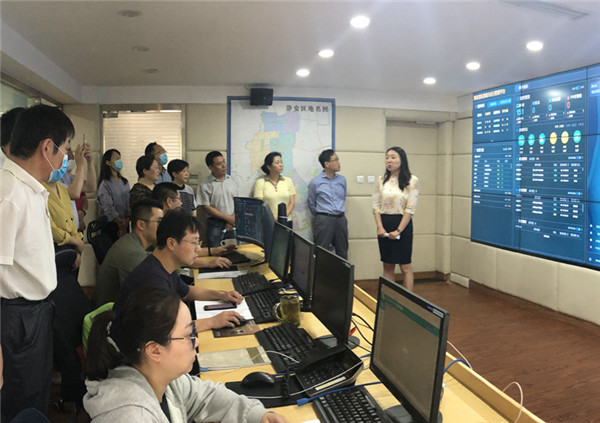 22日,在共和新路街道党工委书记李永波、街道副主任张跃兵陪同下,工作组参观了共和新路街道城运中心,了解城市运行“一网统管”系统构建和运行情况。