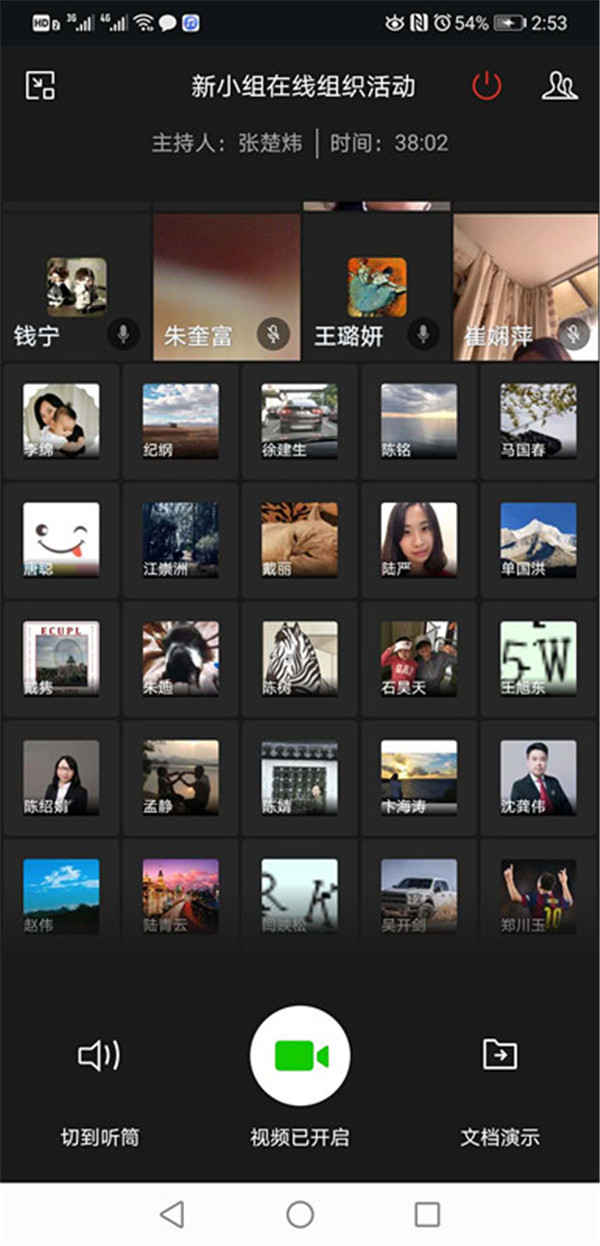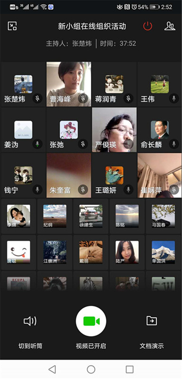 因为是第一次在企业微信平台上开视频会议,社员们大多提前一刻钟“走进会场”,调试手机、电脑以及屏幕形象位置和话筒距离等设备状态,保证视频会议能够按时开始。