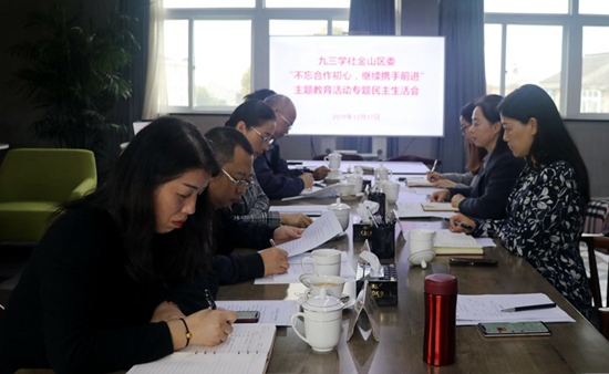 为持续深入开展“不忘合作初心,继续携手前进”主题教育活动,12月17日下午,九三学社金山区委在区委统战部党外人士之家召开“不忘合作初心,继续携手前进”主题教育活动专题民主生活会。社区委主委、副区长张娣芳主持会议,社区委班子成员出席会议。