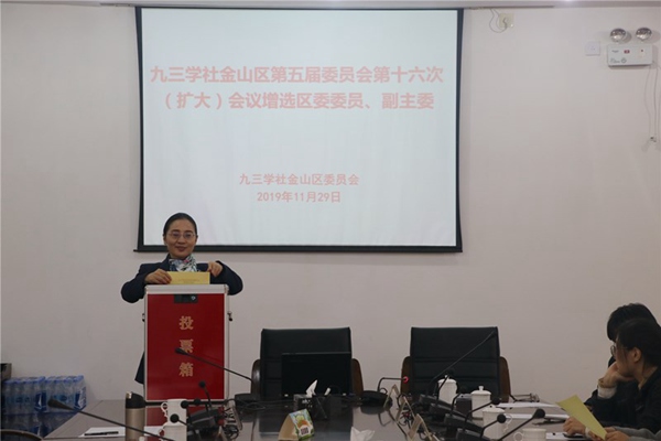 为进一步加强九三学社金山区委领导班子建设,保障社区委相关工作继续良好推进,根据《九三学社章程》《九三学社上海市委员会关于2016年直属基层组织换届工作的意见》,11月29日下午,社区委召开五届十六次全体(扩大)会议,增选社区委委员、副主委。社区委主委、金山区副区长张娣芳主持会议,社区委班子、支社班子成员参加了会议。