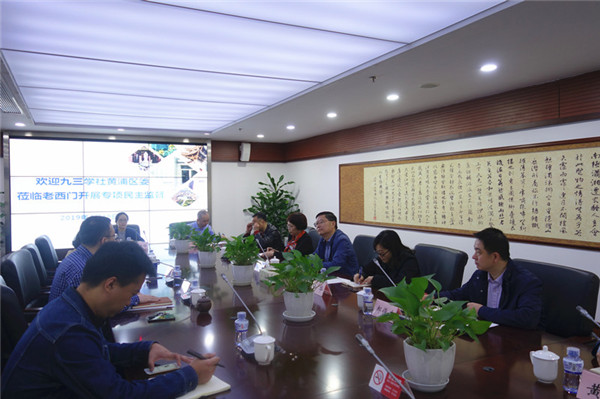 根据中共黄浦区委委托各民主党派开展专项民主监督事项的工作要求,4月19日上午,九三学社黄浦区委到老西门街道开展美丽景区、美丽街区、美丽家园联动建设专项民主监督。社区委主委朱弘带队,共计10位社员组成的民主监督小组参加了调研。老西门街道办主任周明、副主任姜欣、牌楼居民区书记李焘等接待了工作组。