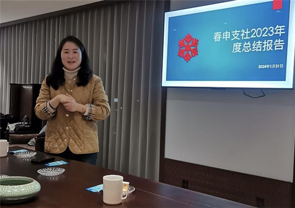 吴海静全面回顾了过去一年春申支社开展的各项工作,详细历数了参观颜福庆诞辰140周年纪念展、中共二大会址、字节跳动科技有限公司,组织重阳节慰问、社情民意培训等活动,同时也提出支社的优势与不足,并规划了2024年的工作设想。她鼓励社员们在新的一年里再接再厉,继续做好参政议政等各项工作。