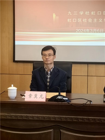 为进一步提升社员参政议政工作能力,凝聚履职尽责合力,3月6日,九三学社虹口区委与虹口区社会主义学院在区社院举办“九三学社虹口区委2024年参政议政培训班”。培训班开班仪式由区社院副院长韩猛主持,九三学社上海市委副秘书长兼参政议政部长张磊、社区委主委章冀龙、社区委副主委唐瑞卿出席。社区委各支社委员、参政议政委员会委员、青年委员会委员及新社员50余人参加培训。