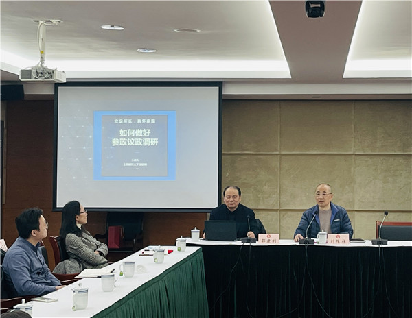 最后,社市委学习和社史工作委员会副主任、九三学社上海财经大学委员会原主委邵建利作了《立足所长,胸怀家国,如何做好参政议政调研》专题讲座,受到社员的普遍好评。