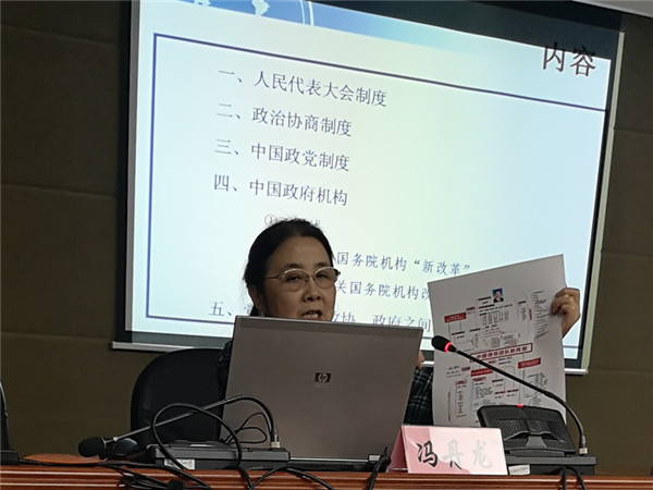 培训特别邀请了全国政协委员、社中央委员冯丹龙和市政协委员、社上海师范大学委员会主委郝勇做主题讲座。冯丹龙以她自己如何抓住社会热点、提出议案、推动立法的参政议政故事为引子,阐释了基于共赢思维的参政议政思路模型和民主党派参政议政的作用和意义。