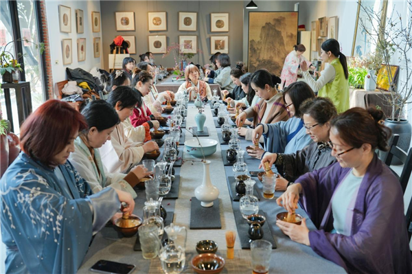 大家还跟随茶艺老师学习了茶文化的历史渊源和宋代点茶技巧,从宋韵点茶的沏茶、赏茶、品茶中增进友谊,陶冶情操。
