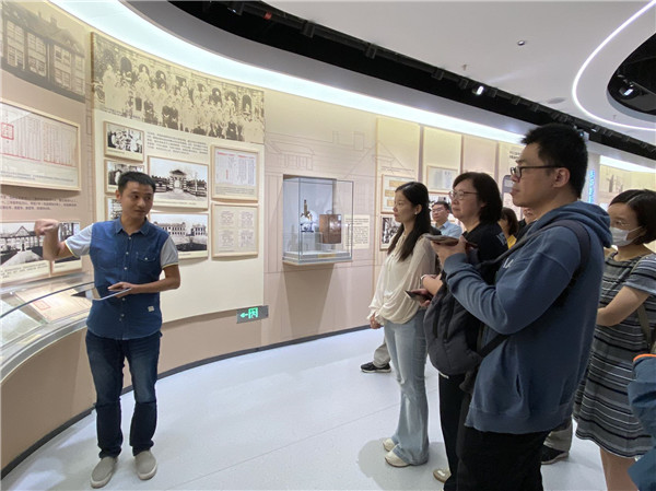 社市委学习和社史工作委员会副主任裴鹏带领大家参观了上医人文库和校史馆。社员们了解到颜福庆等教授的生平,仔细参观他们留存的手稿、展品,大家深深地感受到“九三先贤”们深厚的爱国情怀和孜孜不倦追求科学的精神。校史馆内,社员们通过大量史料,见证了上医的前世今生,见证了上医史上的一位位先贤们如何以身作则践行“正谊明道”,为筹建上医、为中国现代医学发展、为公共卫生研究从无到有作出的突出贡献。