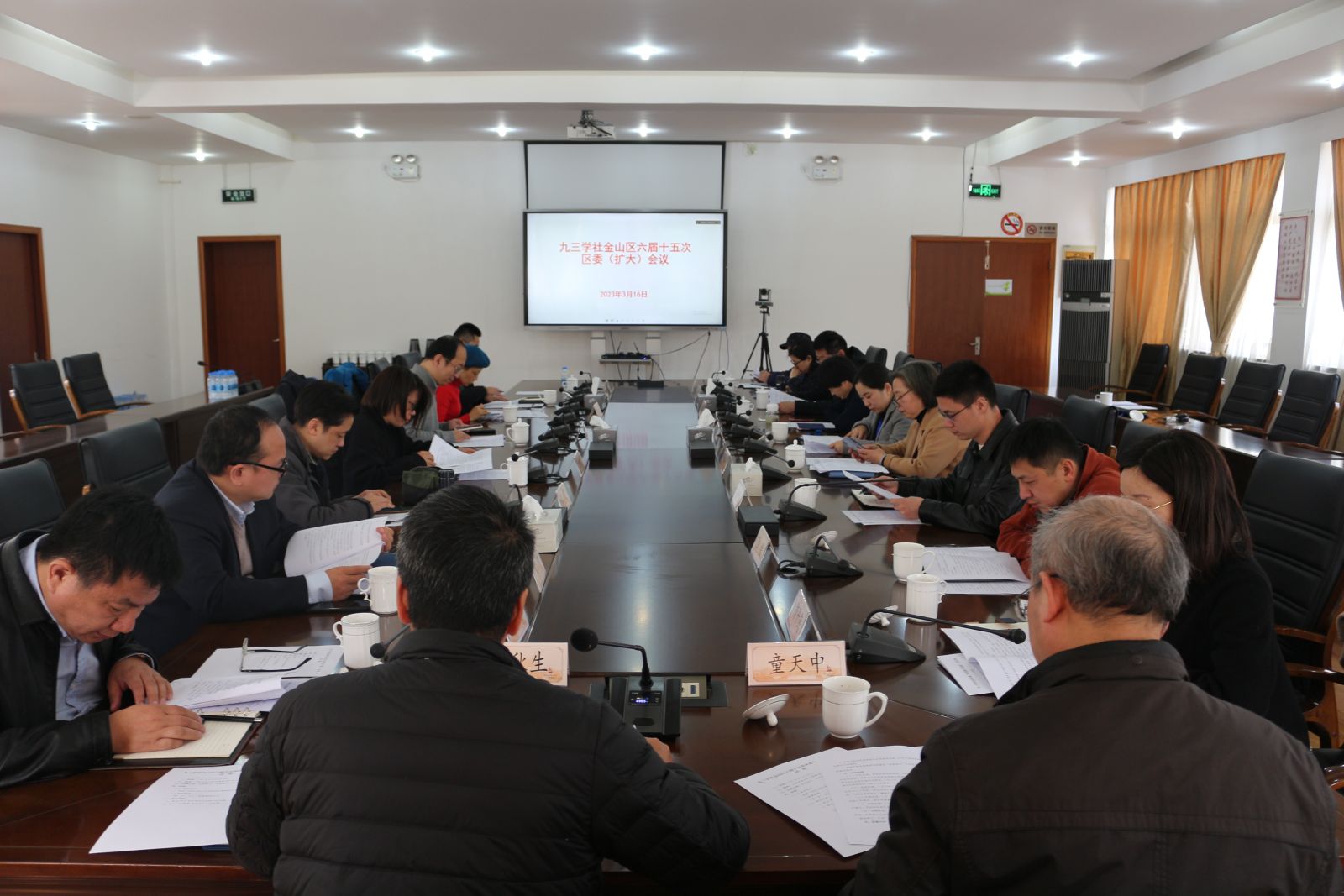 按照九三学社中央和社市委统一部署,2023年3月16日上午,九三学社金山区委召开六届十五次全体(扩大)会议,专题学习全国两会精神。社区委主委邱晏线上出席会议,区委班子、支社班子成员等二十余人参加会议。