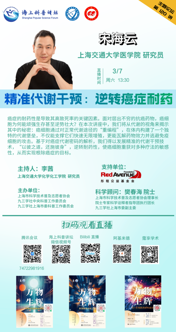 本期特邀上海交通大学医学院研究员宋海云,作《精准代谢干预: 逆转癌症耐药》专题报告。