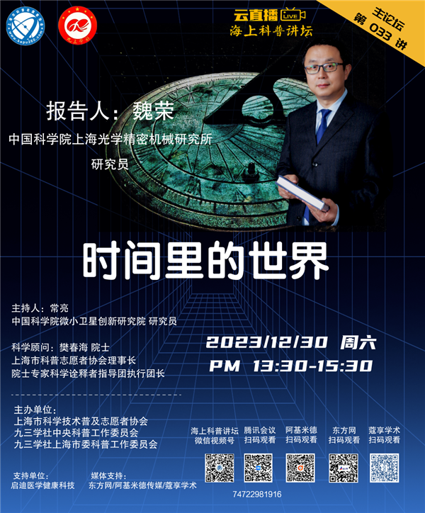 本周六,九三学社上海市委科普工作委员会委员、中国科学院上海光学精密机械研究所研究员魏荣将带来《时间里的世界》,带领我们探索时间计量的奥秘。