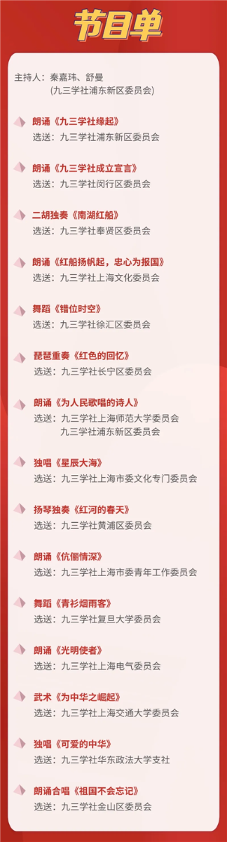 7月19日下午,2024上海统战文化周九三学社主题演绎活动之“同心·赓续——与共和国共成长,谱写时代新华章”文艺演出即将开始!