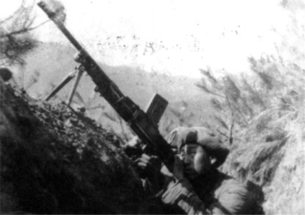 ▲志愿军某部八连五班副班长老雷,准备射击敌机时的刹那间