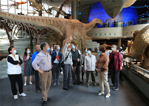 此次活动邀请到自然博物馆老年志愿者林幼苗老师陪同讲解。林幼苗从起源之谜开始,沿着生命长河、演化之道、大地探珍、缤纷生命、生态万象、生存智慧、人地之缘、上海故事到最后的未来之路,社员们仔细聆听的同时,饱览沿途美景,心灵也被大自然深深震撼。大家畅游在来自七大洲的11000余件标本模型中,被“跨越时空的聚会”大型标本阵列包围着,欣赏古今中外200余件动植物明星,非洲大草原的多媒体秀再现了大草原上生机勃勃的各种野生动物,可爱的动物们仿佛就在身边。通过10个常设展区的参观,社员们进入一个自然科学的圣殿,开启自然之旅,发现自然之美,领悟自然真谛,感受人与自然和谐共处的美好时光。