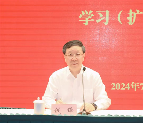 “日前,举世瞩目的中共二十届三中全会胜利召开,对进一步全面深化改革、推进中国式现代化做出科学谋划和系统部署。上午,九三学社市委刚刚完成届中调整,顺利实现政治交接。当此之时,我们举行社市委理论学习中心组学习(扩大)会议,进一步统一思想,提高认识,鼓足接续奋斗的干劲,十分必要。”钱锋在会上强调。