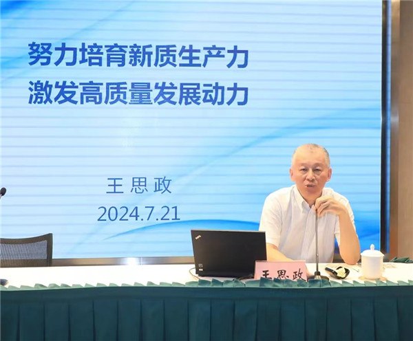 7月21日下午,九三学社上海市委召开理论学习中心组学习(扩大)会议,集体学习中共二十届三中全会精神。上海市政协副主席、社市委主委钱锋主持会议并讲话。会议特邀上海市宏观经济学会会长王思政作题为《努力培育新质生产力 激发高质量发展动力》的专题报告。