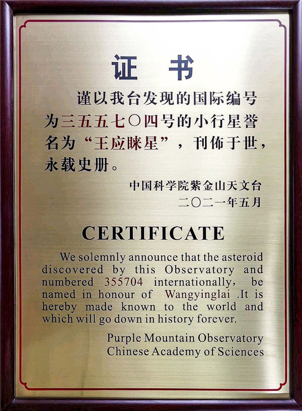 “王应睐星”,永耀星空