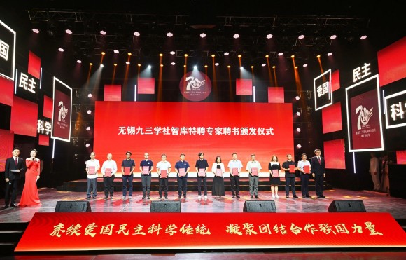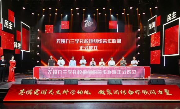 9月3日下午,考察组在无锡大剧院出席了九三学社无锡地方组织成立70周年庆祝大会。全国人大常委会副委员长、九三学社中央主席、中国科学院院士武维华到会祝贺并讲话。江苏省政协副主席、九三学社江苏省委会主委、省社会主义学院院长周岚出席会议并为老社员代表颁发纪念章。无锡市委书记杜小刚、省委统战部副部长周伟文、社中央组织部副部长张红喜、社江苏省委会专职副主委孙丽、社上海市委副主委刘成良等出席庆祝大会。在无锡九三学社校地组织合作联盟成立仪式上,与会的社上海交通大学委员会代表们接受了无锡九三学社智库首批特聘专家聘书。