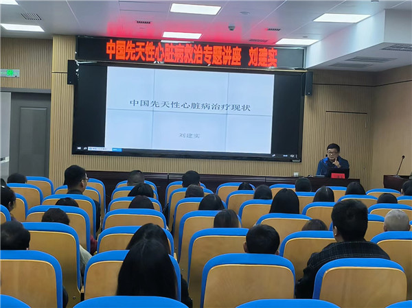 仪式后,上海德达医院心胸外科主任刘建实现场为50余位心内科医生、乡镇卫生院全科医生做先天性心脏病救治专题讲座。
