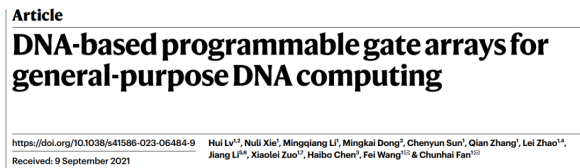 9月13日,上海交通大学化学化工学院/变革性分子前沿科学中心樊春海院士与王飞副教授团队合作在Nature期刊上发表了一篇题为“DNA-based programmable gate arrays for general-purpose DNA computing”的研究成果。