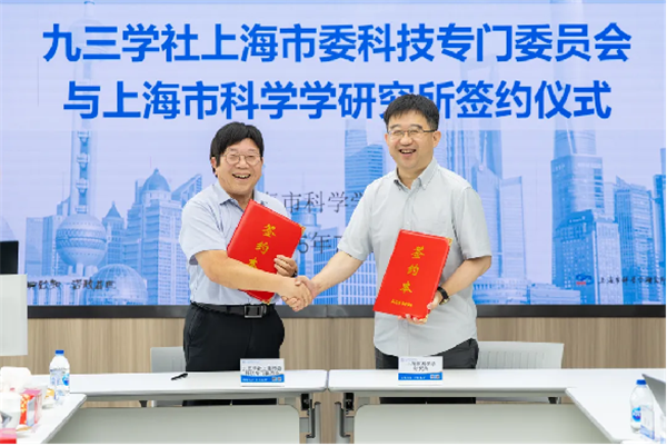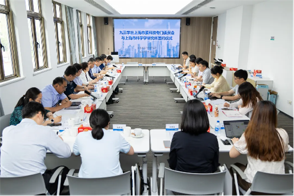 为全面贯彻中共二十大和二十届二中、三中精神,认真落实习近平总书记考察上海重要讲话精神和对上海工作重要指示要求,按照中共十二届市委七次全会部署,助力上海进一步深化国际科技创新中心建设,7月15日下午,九三学社上海市委科技专门委员会与上海市科学学研究所签订对口联系合作框架协议。社市委副主委雷群英、秘书长张磊、科技专门委员会主任黄勇平,上海市科学学研究所党总支书记、副所长(主持工作)陈海鹏,党总支副书记、副所长张聪慧出席。黄勇平、陈海鹏代表双方签署协议书。