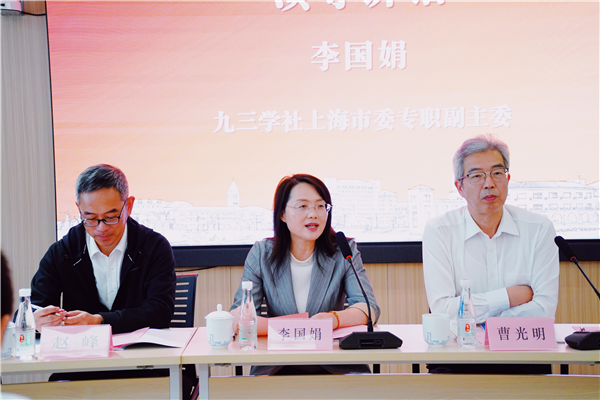 “金秋十月,秋风送爽,我们相聚在黄浦江畔,相聚在上海师大,开启本次研修,我谨代表九三学社上海市委向来自贵州威宁和四川旺苍的36位老师表示热烈的欢迎。恰逢上海师范大学建校70周年,借此机会祝愿上海师范大学‘师道相承七十载,立德树人续华章’。”李国娟代表九三学社上海市委向精心组织本次培训的上海师范大学、社上海师范大学委员会表示衷心感谢。