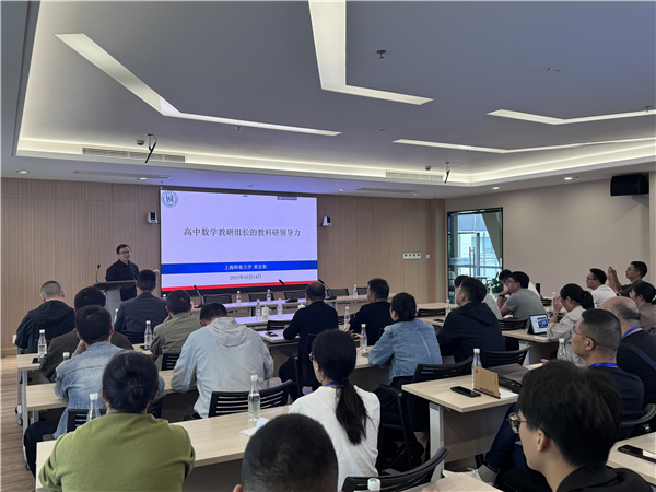开班仪式后,黄友初以“高中数学教研组长的教科研领导能力”为题,开启首场专题讲座。根据研修计划安排,培训期间还将举办“活用数学教育技术,促进核心素养成长”“高中数学课程标准与教材解读”“高中数学校本研修的方法与实践”等一系列专题讲座,并安排学员参加上海市高中数学教研活动、与上海市建平中学专家教师进行专题交流、观摩上海市闵行中学东校课堂等环节,旨在进一步提升教师的专业教学能力。