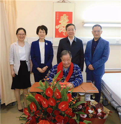 钱锋代表九三学社市委向杨老送上生日祝福,祝愿杨老福寿绵长。当得知杨老各项指标都很稳定,饮食起居状况良好,今年重阳节还吃了医院特意准备的重阳糕时,钱锋向医护人员们表示由衷的谢意。他说,杨老是我们九三学社的“老宝贝”,非常感谢医院对杨老的悉心照顾,感谢医护人员的用情用心呵护。