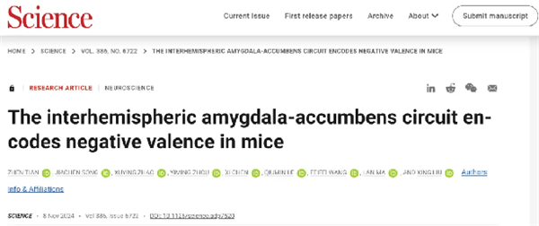 九三学社社员,中国科学院院士,复旦大学脑科学研究院院长、医学神经生物学国家重点实验室主任、药理研究中心主任马兰教授与复旦大学基础医学院、脑科学研究院、脑功能与脑疾病全国重点实验室刘星教授合作研究发现,小鼠脑内基底外侧杏仁核(BLA)神经元,通过连接左右两侧脑半球的前连合(Anterior Commissure,AC)投射到对侧脑半球的伏隔核(NAc),这一跨脑半球神经环路与同侧神经环路的功能相反,介导恐惧、厌恶类负性情绪及逃避行为的产生。2024年11月8日,这一重要发现以《杏仁核至对侧脑半球伏隔核神经环路编码负性情绪效价》(“The interhemispheric amygdala-accumbens circuit encodes negative valence in mice”)为题发表在《科学》(Science)杂志上。